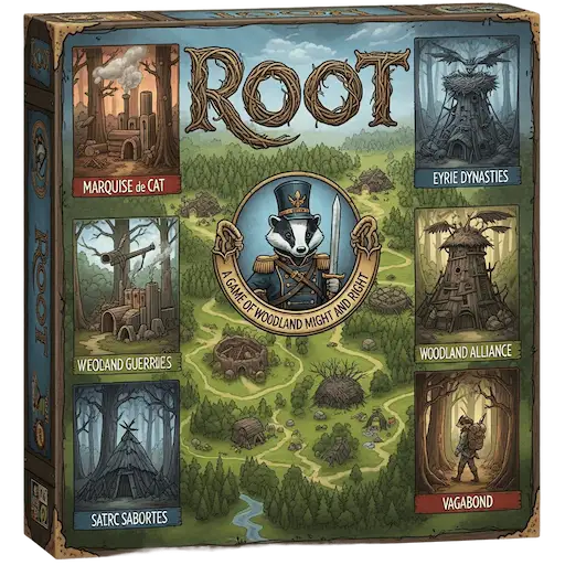 Root, c’est un jeu de plateau stratégique pour 2 à 4 joueurs, qui met en scène des factions asymétriques qui se livrent une bataille féroce. Clair et limpide, le jeu s’appréhende très vite dans ses principes, mais on peut creuser longtemps l’aspect stratégique pour devenir de plus en plus redoutable.