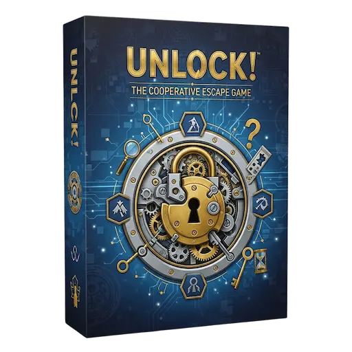 Unlock est un jeu de cartes coopératif pour 1 à 6 joueurs qui s’inspire des jeu de type Escape Game. Nous l’avons testé et avons constaté que les énigmes, le travail d’équipe et les scénarios chronométrés créent une expérience tendue et captivante et très immersive (à réserver pour les joueurs de plus de 10 ans).